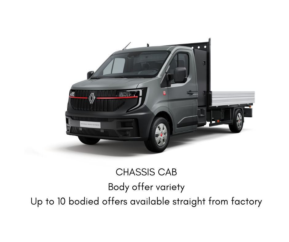 * Finance for business users only. Finance provided by Renault Trucks Financial Services. Finance is subject to credit acceptance. Terms and conditions apply. The product offered is a 60 month Hire Purchase based on 25% deposit (£8,188.00) + VAT and an interest rate of 3.99%. It includes a 36 month (or up to 100,000 miles) service reference pack. The offer is available on a limited number of Renault Trucks Master 4 Red Edition 150ps L2H2 vans. The offer is open until 30th June 2025 unless withdrawn earlier.